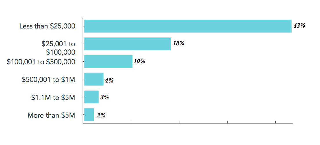 Not all companies will have $5 million at their disposal, therefore it is no surprise that the majority of respondents (43%) said they would be investing $25,000 or less within the next 12 months. It is important that organizations use the least amount of budget, yet gain the highest ROI.